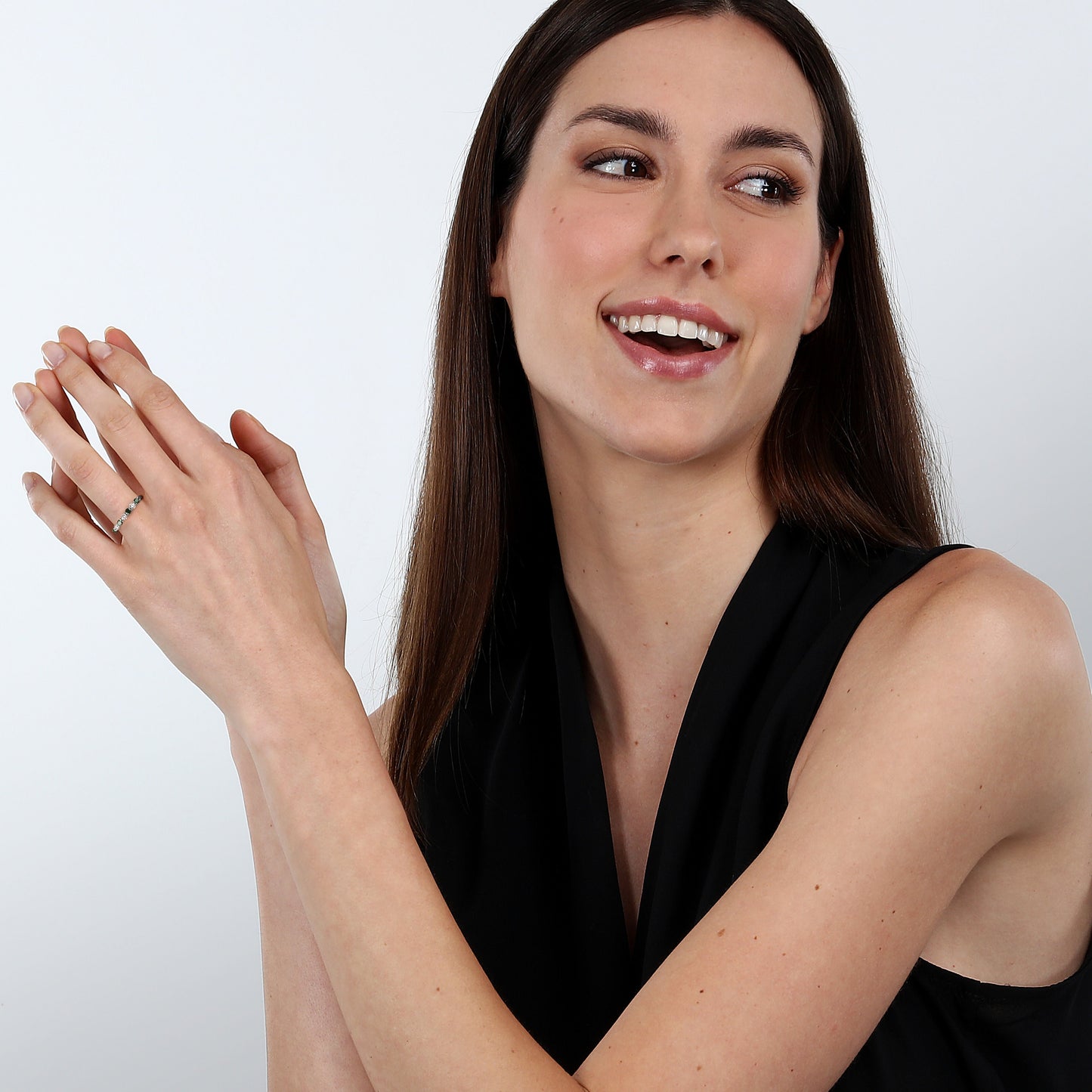 BAGUE FEMME DIAMANT LIVE LD06058009. Taille : 09. Couleur : VERT. Matériaux : Or blanc 375 #. Émeraude cultivée en laboratoire + dia. Emballage : boîte d'origine LIVE DIAMOND. Garantie : Garantie internationale LIVE DIAMOND.