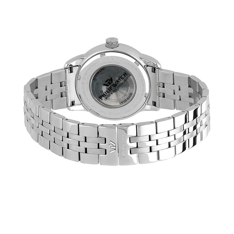 MONTRE ANNIVERSAIRE PHILIP WATCH R8223150006. Montre homme Philip Watch, réf. R8223150006, collection ANNIVERSAIRE, en acier, mouvement automatique, fonction automatique. La montre se caractérise par un bracelet en acier, avec un double fermoir dissimulé. Le boîtier de la montre mesure 47x40 mm, entoure un cadran blanc et est équipé d'un verre minéral résistant. Résistance à l'eau jusqu'à 10 ATM. La montre est contenue dans son emballage d'origine Philip Watch, avec un certificat de garantie de 2 ans.
