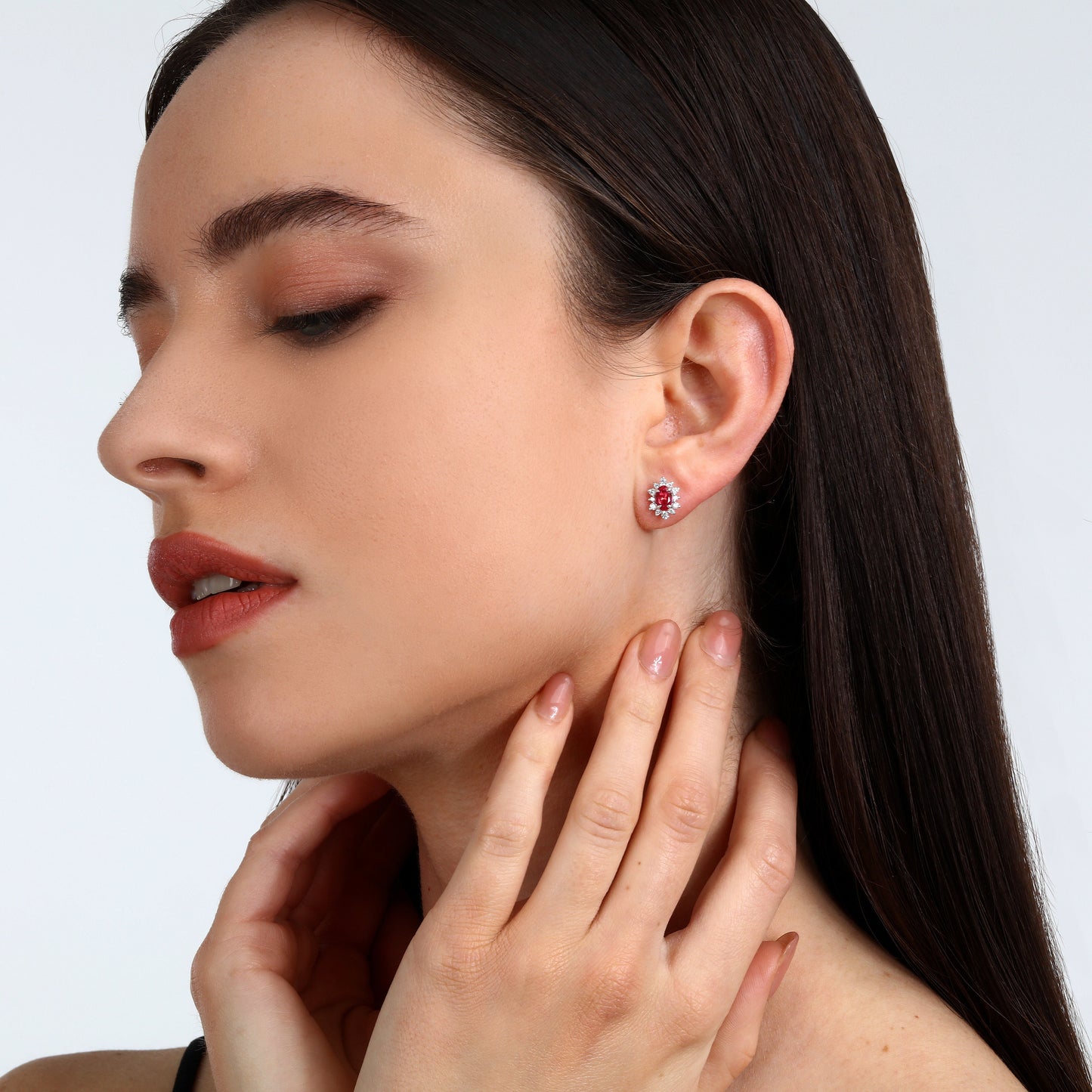 BOUCLES D'OREILLES FEMME LIVE DIAMANT PIERRE GEMME CLASSIQUE LDW100173. Matériaux : or blanc recyclé 375#. rubis cultivé en laboratoire + diamant. Emballage : boîte d'origine LIVE DIAMOND. Produit avec garantie internationale LIVE DIAMOND.