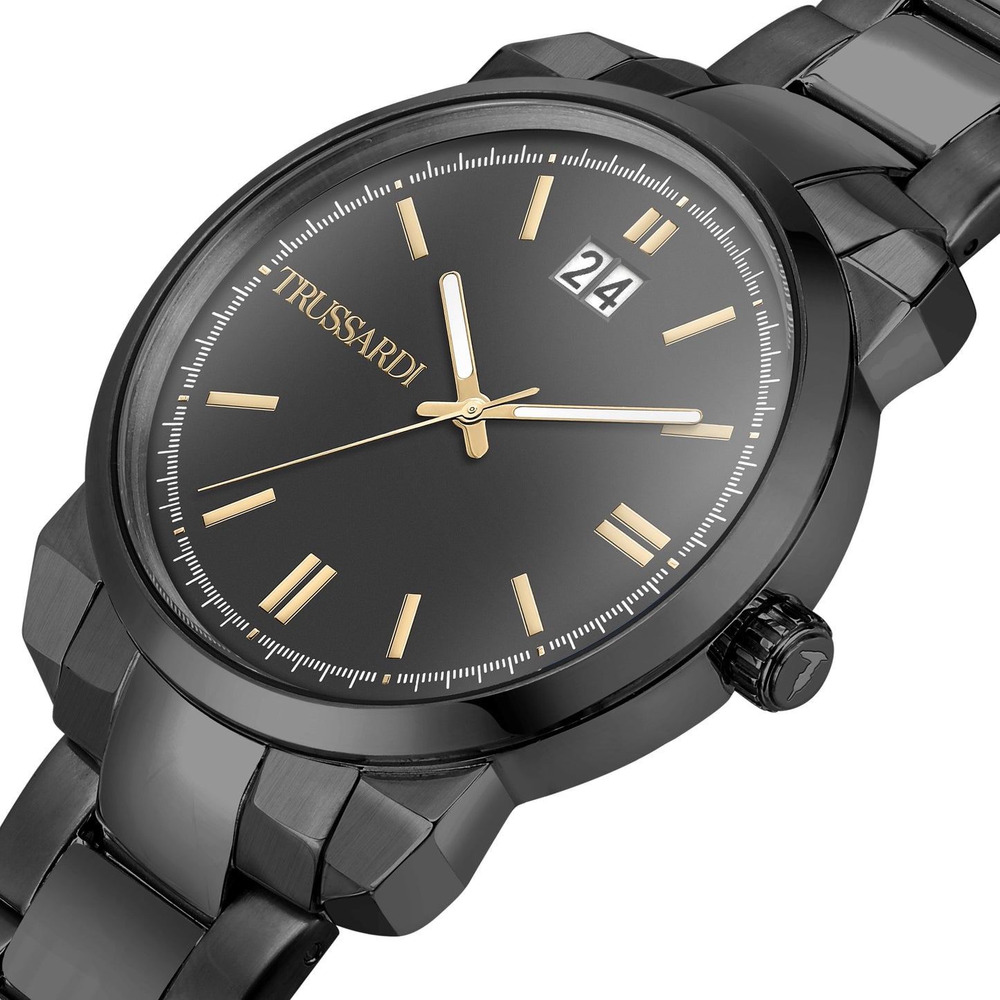MONTRE TRUSSARDI T-CITY R2453154004. Montre heure seulement pour homme de Trussardi de la collection t-city. Montre ronde avec boîtier de 40 mm et cadran gris. Montre en acier PVD bronze avec verre minéral. La résistance à l'eau est de 5 ATM. Emballage : Boîte Trussardi d'origine. Garantie internationale Trussardi.