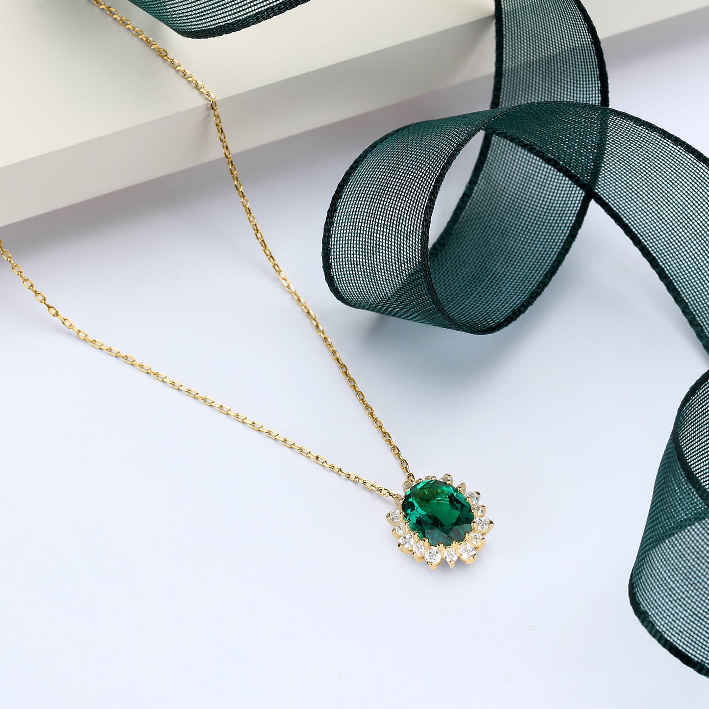 COLLIER DE DIAMANTS VIVANTS POUR FEMMES LDY210110I. Taille: 42CM. Couleur verte. Matériaux : or jaune recyclé 375#. Émeraude cultivée en laboratoire + dia. Emballage : boîte d'origine LIVE DIAMOND. Produit avec garantie internationale LIVE DIAMOND.