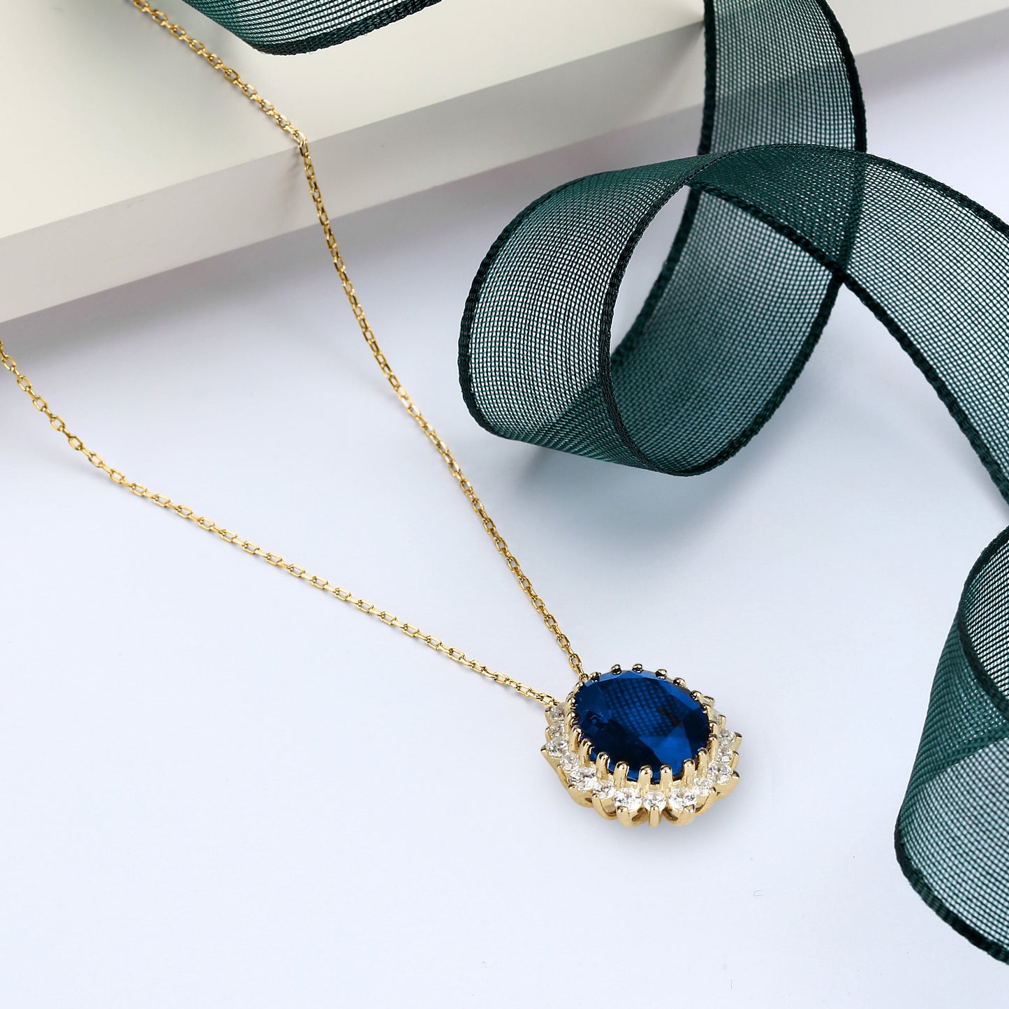 COLLIER DE DIAMANTS VIVANTS POUR FEMMES LDY235111I. Taille: 42CM. Bleu clair. Matériaux : or jaune recyclé 375#. saphir cultivé en laboratoire + diam. Emballage : boîte d'origine LIVE DIAMOND. Produit avec garantie internationale LIVE DIAMOND.