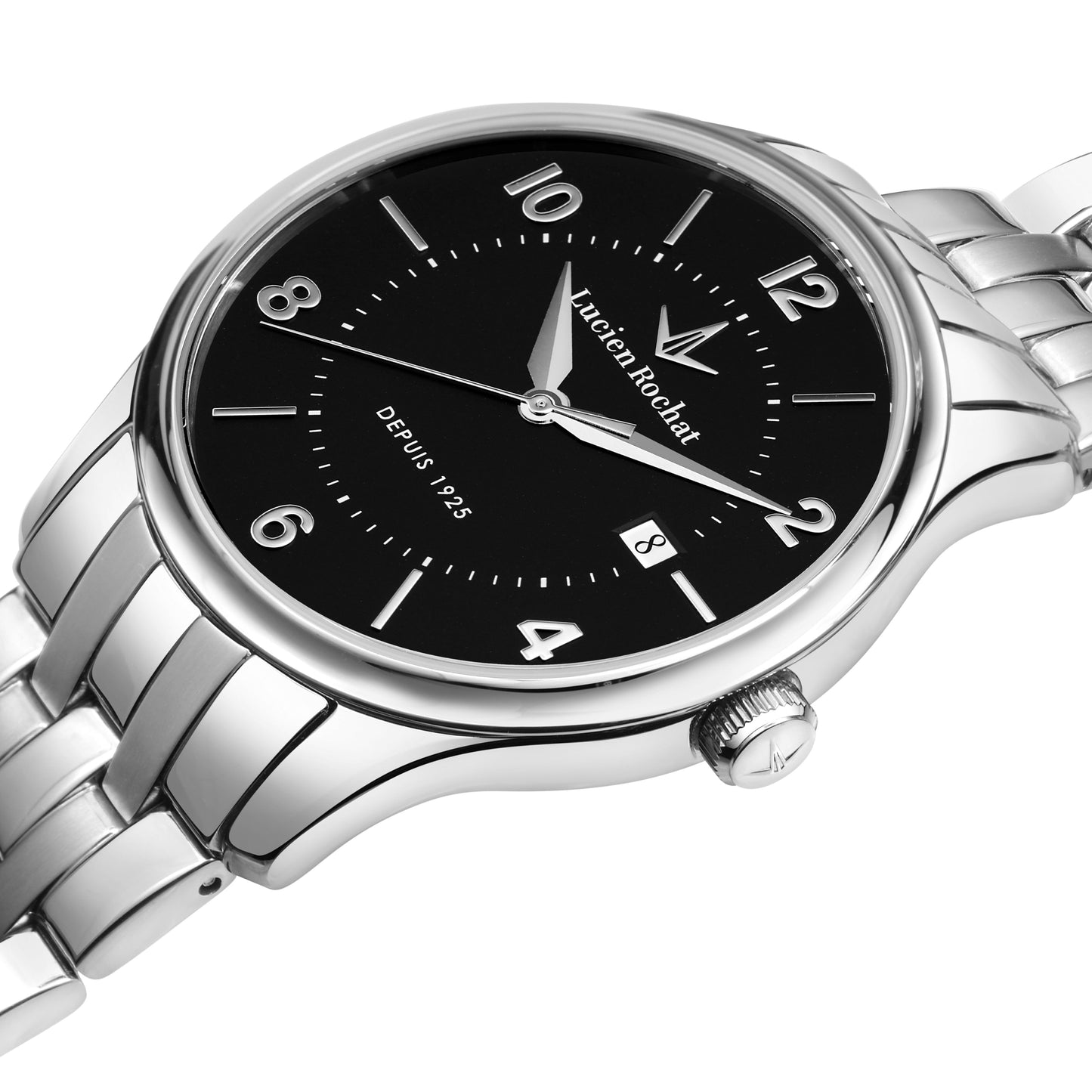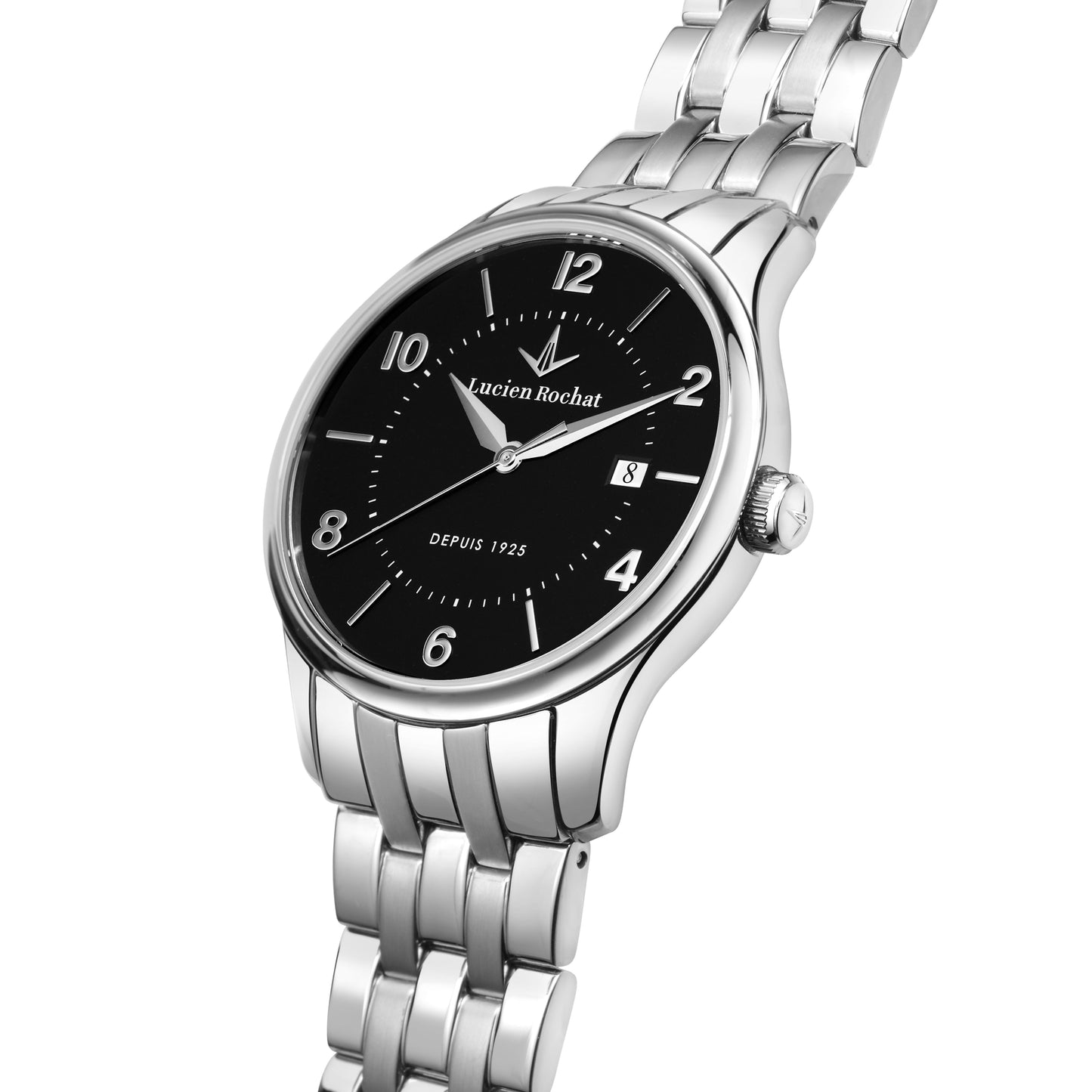 MONTRE HOMME LUCIEN ROCHAT MONTREUX R0453115002. Montre heure et date avec mouvement MVT. VJ42 TIGE H3 DATE H3. Couleur : gris, noir. Matériaux : acier. Cadran en verre minéral recouvert de saphir noir avec index arabes à 3 aiguilles avec cadre de calendrier à 3 heures, finition ST.STEEL.POLISHED. Dimensions du boîtier : 39. Bracelet en acier gris acier. Fermeture : BOUCLE DE DÉPLOYEMENT AVEC POUSSOIRS. Conditionnement : boîte d'origine LUCIEN ROCHAT. Produit avec garantie internationale LUCIEN ROCHAT.