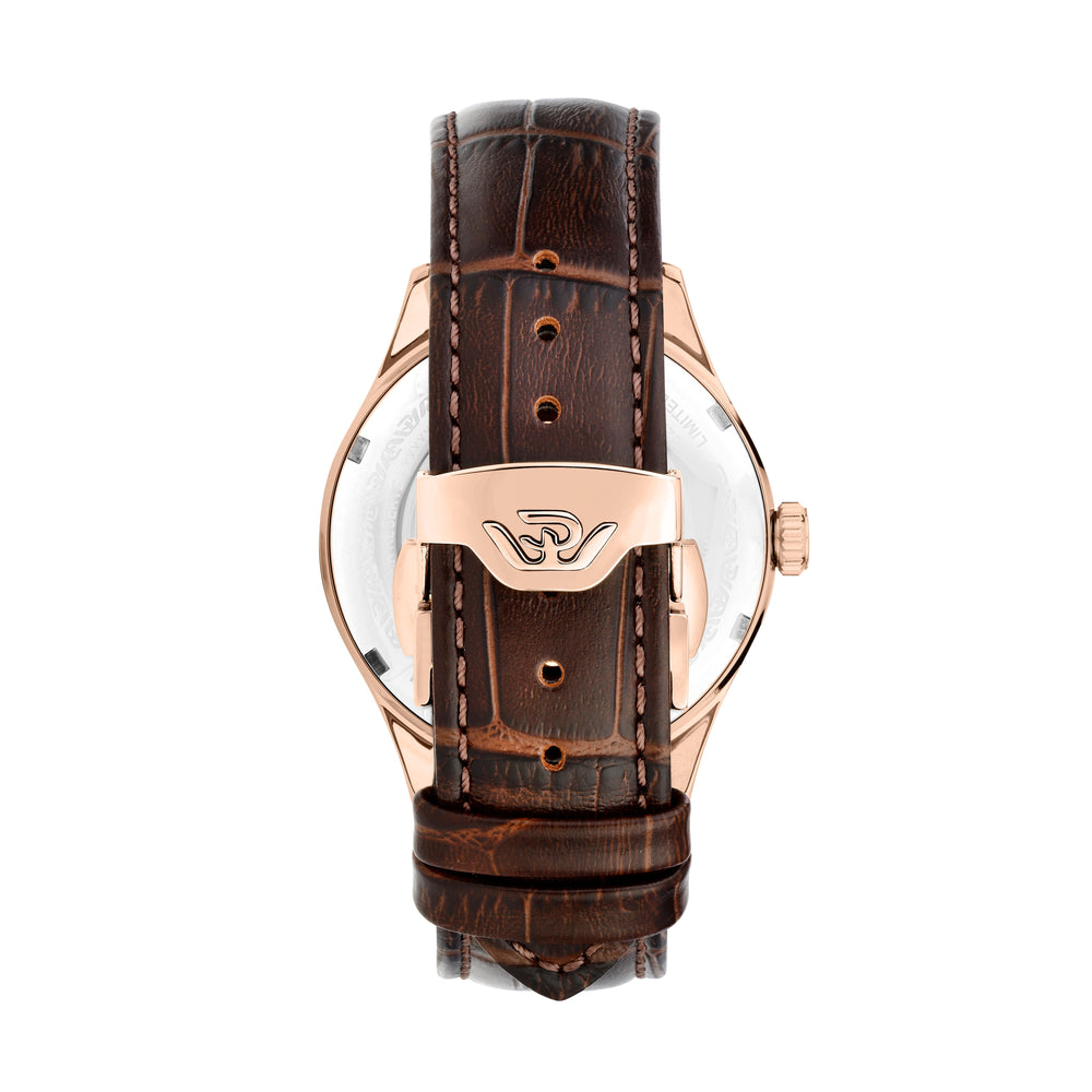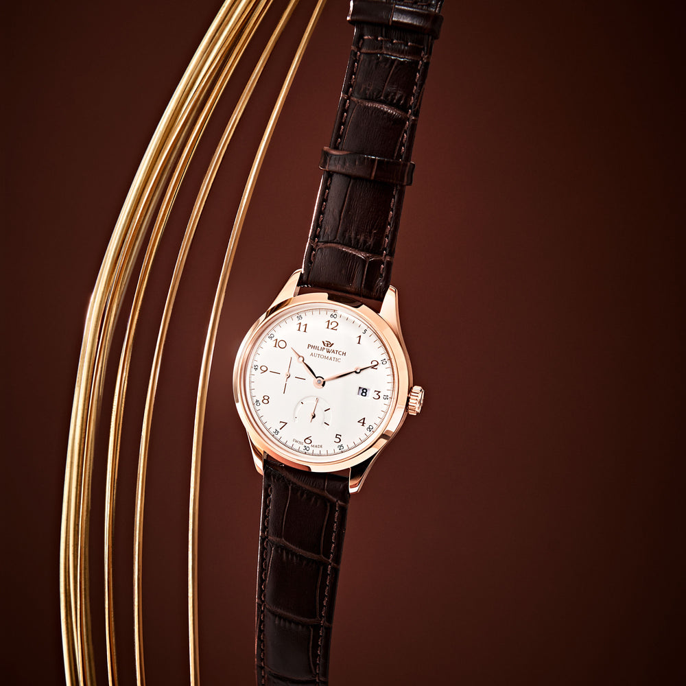 Montre Philip Watch Museum R8221225004. Cette montre pour homme Swiss Made raffinée est l’accessoire parfait pour ceux qui souhaitent allier prestige et fonctionnalité dans un garde-temps au caractère affirmé. Le boîtier de 40 mm, aux proportions harmonieuses, assure un confort optimal au poignet ainsi qu’une présence élégante et déterminée. À l’intérieur bat un mouvement automatique Swiss Made, garantissant précision et remontage continu grâce aux gestes du quotidien – symbole de la plus pure tradition horlogère. Le bracelet en cuir de crocodile souligne le caractère artisanal et ajoute une touche classique d’une élégance absolue, complétant le design avec un raffinement intemporel. Coffret : boîte d’origine Philip Watch. Garantie : garantie internationale Philip Watch.